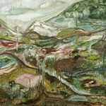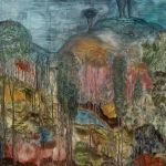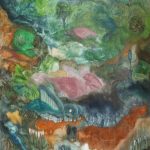 Le sue pitture oscillano tra astratto e figurativo e attingono da una tavolozza