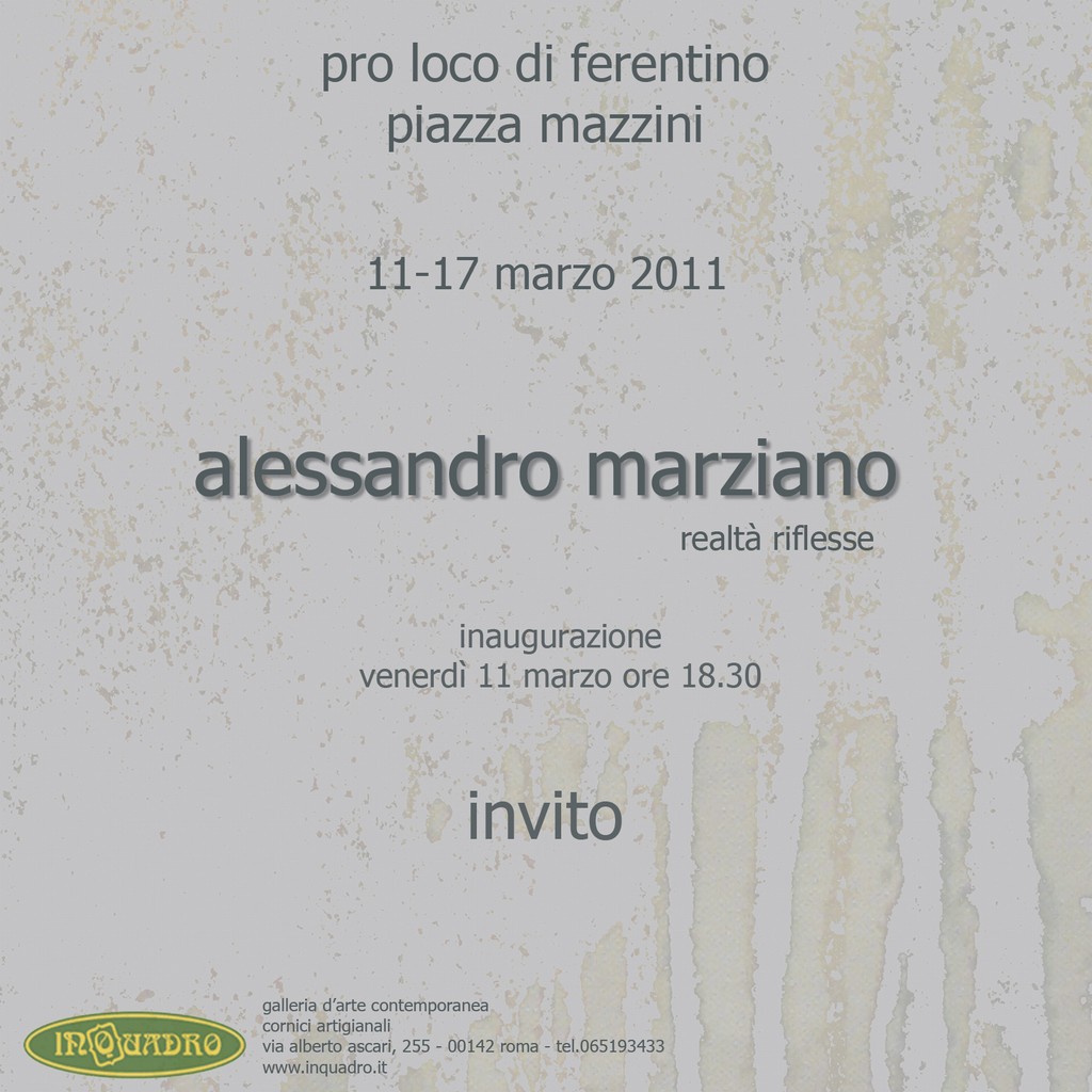 REALTA’ RIFLESSE e’ la presentazione degli ultimi lavori di Alessandro Marziano, opere realizzate ricercando riflessi, trasparenze e sovrapposizioni, con la raffinata tecnica che contraddistingue l’artista e che si presta al meglio per esprimere sensazioni ed emozioni ricche di fascino.
