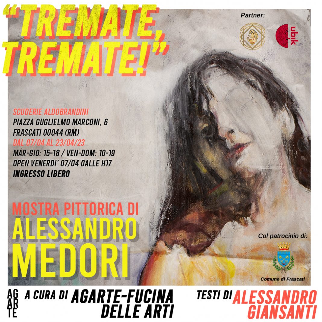 “Tremate, tremate!” racchiude il lavoro pittorico realizzato dall’emergente artista romano Alessandro Medori in una selezione di 20 opere ad olio su tela e 6 sculture in terracotta esposte all’interno della suggestiva location delle Scuderie Aldobrandini. Le opere realizzate negli ultimi anni da Medori riflettono la sua ricerca oscura, intima e a tratti esoterica.