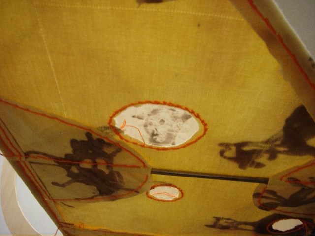 seta dipinta a mano, le ali rivestite di un vecchio lavoro