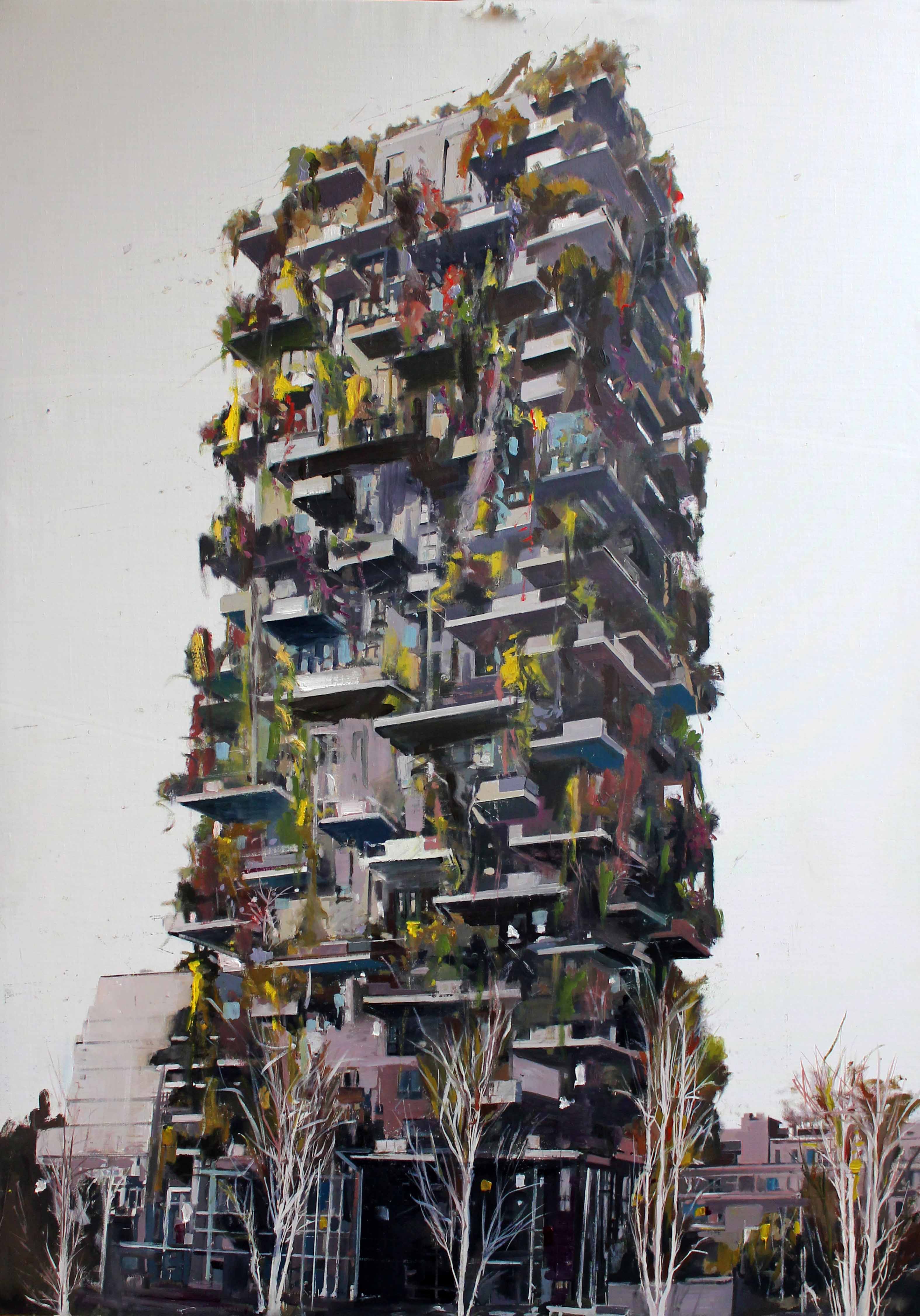 La mostra è incentrata su un ciclo di opere realizzate dall’artista e attentamente selezionate dai curatori. Un racconto di Milano, la città “verticale” per antonomasia, che già dal periodo post-industriale è una delle più “effervescenti” capitali economiche europee.