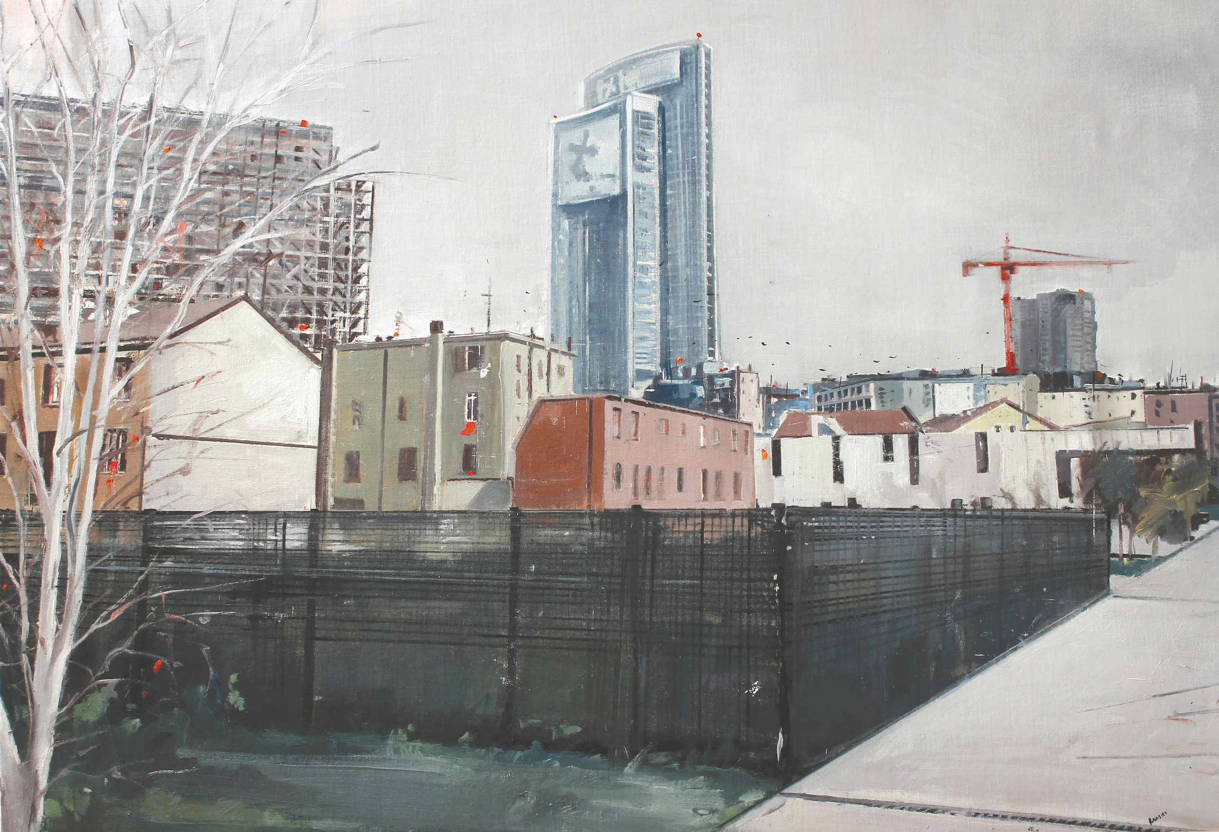 Nelle nuove opere di Alessandro Russo c’è un vivo rapporto tra pittura e paesaggio urbano con l’omaggio alla Milano degli ultimi anni in continua evoluzione, quasi a rimandare al fervente sviluppo industriale del periodo in cui Boccioni realizza proprio a Milano, nel 1910 -11, La città che sale. L’artista, di origine calabrese, è suggestionato dalle nuove architetture che caratterizzeranno la città che, con la sua borghesia industriale illuminata, ha sempre sostenuto gli artisti, generando, nel corso del Novecento, importanti collezioni che oggi possiamo vedere nei musei, come il Museo del ‘900 o le Gallerie d’Italia aperti negli ultimi anni.