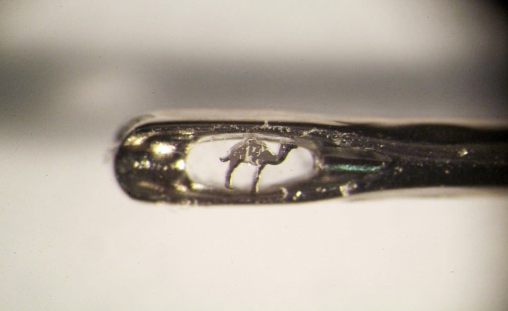 Grazie alle nanotecnologie, si varcano confini da sempre considerati insuperabili ed è addirittura possibile far passare un cammello nella cruna di un ago. Accade in La chiave per il Paradiso, opera ironica che gioca con il paradosso biblico per cui “È più facile per un cammello entrare nella cruna di un ago che per un uomo ricco entrare nel regno di Dio”. Di qui la provocazione: l’opera, infatti, sarà messa in vendita su eBay con un valore base d’asta di 1milione di euro.
