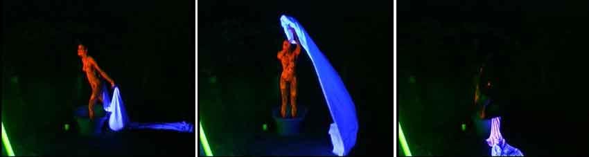 Tre colori scandiscono il ritmo della mostra: verde, rosso e bianco, l’invito, anche esso opera dell’artista, funziona come mappa illustrativa del nuovo percorso che andremo a scoprire.