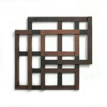 Sono come griglie aperte, apparentemente casuali nella forma, che, collocate una sull’altra chiudono la struttura, struttura sulla quale emergono, evidenziati da diverse sfumature di colore o da variazioni della superficie, perimetri rettangolari o quadrati che definiscono l’ordine di sovrapposizione.