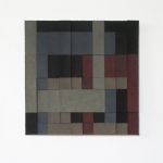 I colori attribuiti a questa composizione però sono dati ruotati o ribaltati orizzontalmente o verticalmente rispetto al collage, per cui zone di fondo diventano parti di elemento e viceversa. Ne deriva un effetto quasi mimetico dato che il disegno ottenuto confonde la reale costruzione del lavoro e nello stesso tempo la geometria è ammorbidita dai vari elementi di feltro i quali sono appesi solo nella zona superiore, per cui perdono rigidità attenuando l’aspetto rigoroso dell’opera.