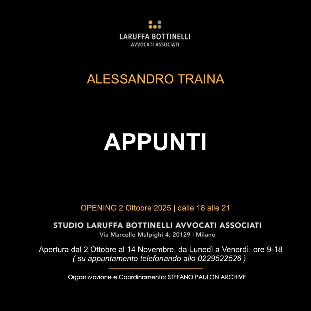 Giovedì 2 ottobre lo studio Laruffa Bottinelli Avvocati Associati inaugura nei suoi spazi la mostra personale dell’artista Alessandro Traina.