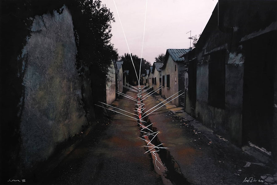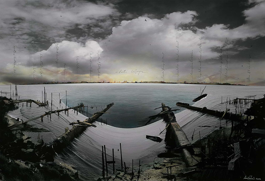 Luoghi/non-luoghi di connessione e ricomposizione, in cui fratture geologiche e geopolitiche diventano punti di contatto, animano i lavori pittorico/fotografici di Alessandro Vascotto in una mostra a cura di Cecilia Donaggio Luzzatto-Fegiz e Guillermo Giampietro organizzata dal collettivo M-ARTE.