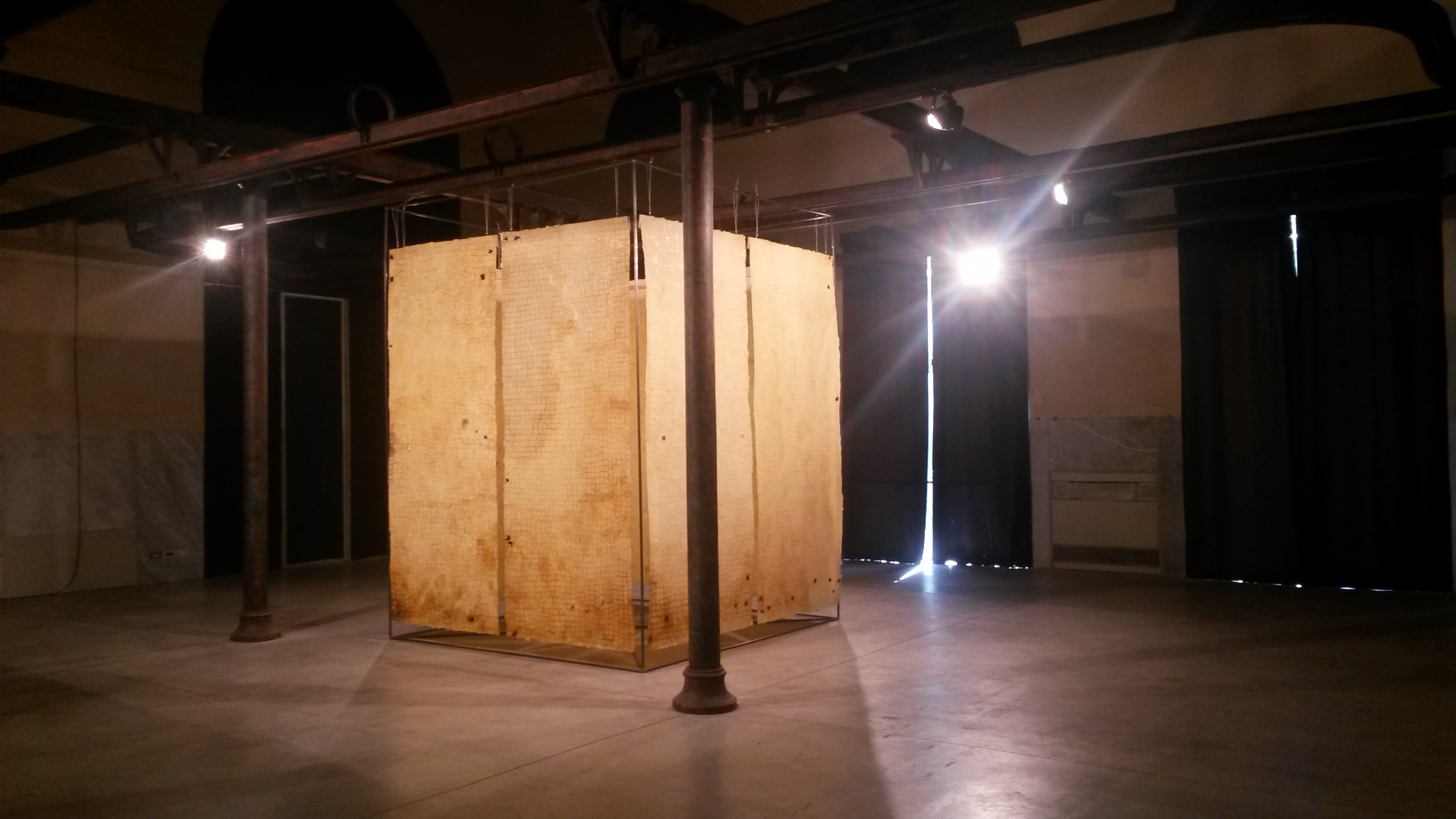 La pittura va quindi oltre, si mette in viaggio, simbolicamente all’interno dell’opera e materialmente attraverso lo spazio; dall’artista che l’ha creata l’opera si dirige verso il pubblico, accompagnandolo e svelandosi un poco alla volta. Lo spazio, interno ed esterno, ne risulta smarginato, aperto, attraversato e rigenerato dalle tracce di un processo creativo a tutto tondo che coinvolge l’io, la vita e la morte, e di questo amalgama trova la possibilità d’espressione attraverso la forma: ibridi sinuosi tra l’animale e l’umano, pagine di libri che diventano tentacoli che sondano il terreno e diventano radici, tavoli anatomici dove il vivente si scopre interrelato e metamorfico: in parte pianta, in parte animale, in parte umano e in parte materia inorganica.