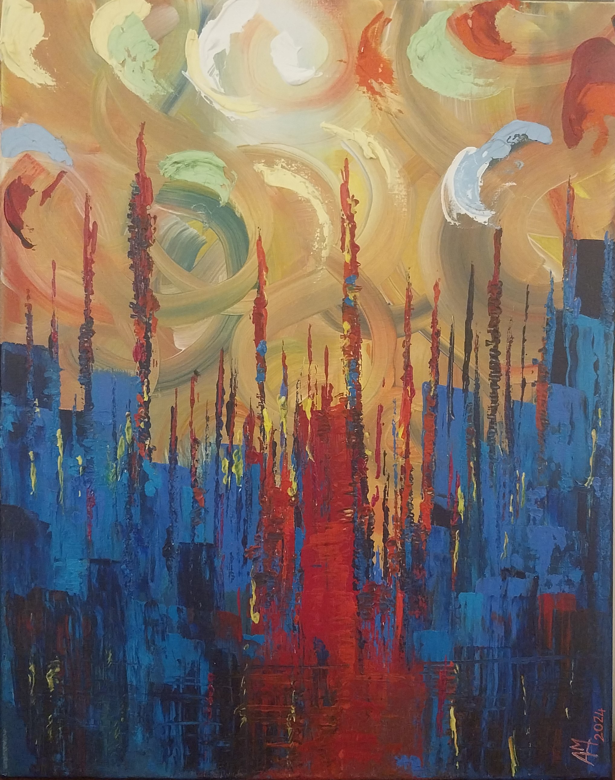 S’inaugura il 22 Marzo alle 18:30, presso Quintessenza caffè gourmet in Via Sabotino 13, la Personale di Alessia Marinelli “Il Ritmo del Sacro nella danza degli elementi” organizzata da Sphaerica srl e Quintessenza Caffè Gourmet. Saranno visibili, presso la location nel cuore di Prati a pochi passi da Piazza Mazzini, una ventina di tele realizzate dalla giovane artista romana. Le opere sono vivaci e vitali, rammentano con i loro colori l’intensità di vita del Fauvismo movimento di avanguardia degli inizi del novecento. Nella sua ricerca la Marinelli spiritualizza forme e colori, consentendo al visitatore un viaggio interiore. Cosi afferma il Curatore Giuseppe Ussani d’Escobar nel testo in catalogo: “nell’opera “Ovunque tu sia” le pennellate di Alessia vanno a creare, nella parte alta dell’opera, delle forme curvilinee che galleggiano in una dimensione irreale; questi archi sembrano ricercare una loro identità, una loro dimensione umana e divina, vanno quasi a dare vita a dei semicerchi, che ricordano la luminosità e le tentazioni spirituali dei cerchi di Robert Delaunay (Parigi 1885 – Montpellier 1941); nel mentre, nella parte inferiore della tela, accade che si vada sviluppando una verticalità di linee che mirano a intersecarsi con il fondale degli archi sovrastanti, esplorando la medesima verticalità di Franck Kupka (Opocno 1871 – Puteaux 1957) che affermava esserci “… nella verticale la maestà della statica, essa contiene al tempo stesso l’alto e il basso, li riunisce, divide lo spazio orizzontalmente … in una serie di parallele la verticale diventa l’attesa … che si diffonde nell’orizzontale”. L’arte della Marinelli dialoga con la musica a lei contemporanea, in particolare con i messaggi densi di significato e contenuti del rapper Wenfri e rende omaggio con l’opera “Non c’e spazio nello spazio” alla canzone “Quello che non ho” e al video ad esso collegata; come sostiene il Curatore della mostra: “La visione e l’elemento fantastico si concretizzano nel dipinto nel quale un uomo, abbigliato allo stile del Wenfri del video, avanza su un ponte di legno che viaggia all’infinito; l’opera è permeata da un enigma metafisico e l’inquietudine plasma l’atmosfera, l’assorbe. L’immagine risulta fluttuante, tutta la struttura potrebbe rovesciarsi, non vi è stabilità, la figura umana è congelata in un tempo bloccato e infine la frase “quello che non ho”, derivata dal testo della canzone, si accorda perfettamente allo stato d’animo del passante, del pellegrino, dedito alla ricerca inesausta della chiave grazie alla quale poter interpretare la realtà che lo circonda e che lo assedia. In conclusione l’arte di Alessia alimenta in noi la sete di infinito che appartiene a tutti gli uomini di tutti i tempi”.