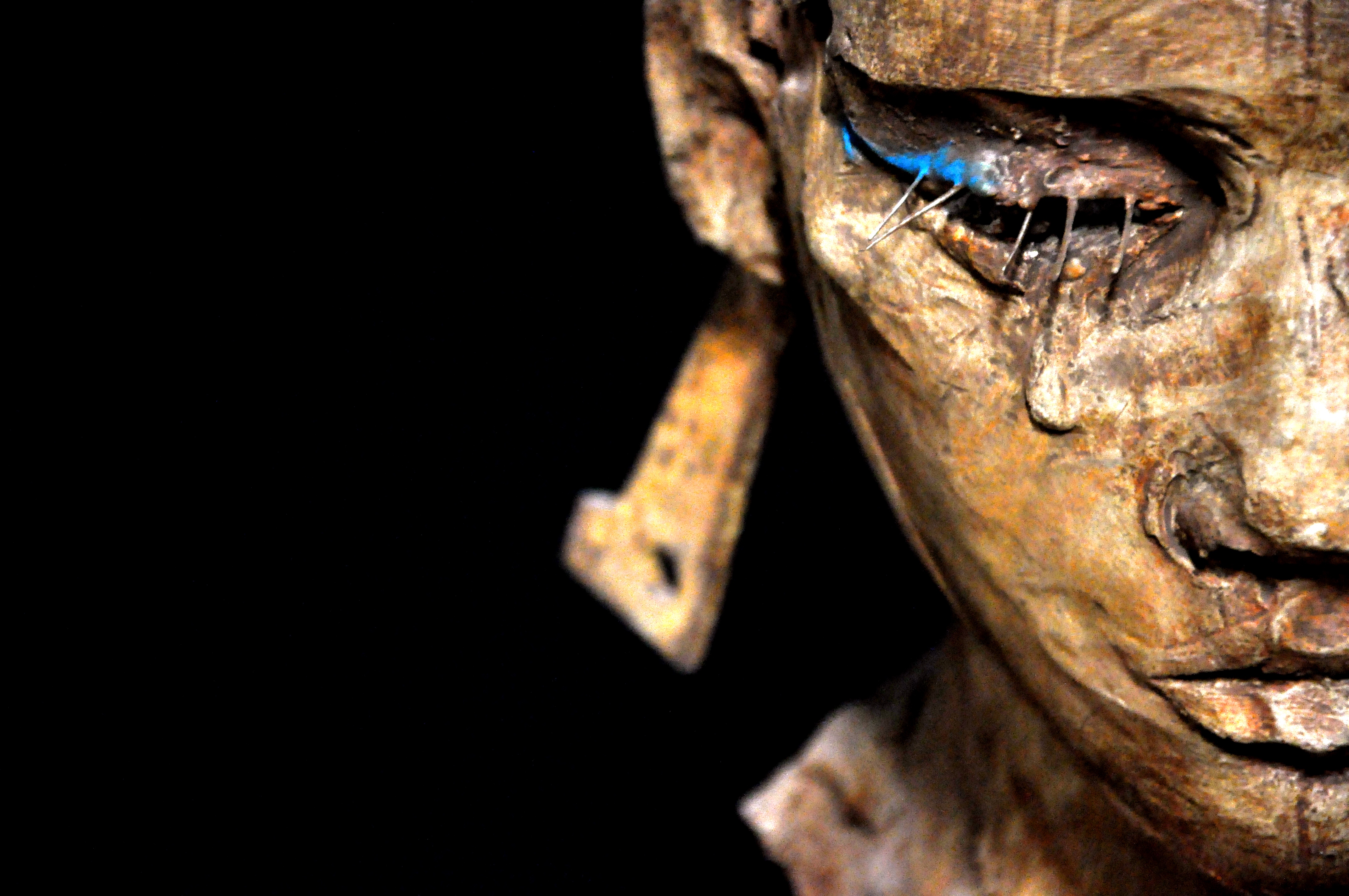 Lamiere, ferri arrugginiti, addizionati a plastiche deformate, connotano le sculture macerate di Alessio Deli. Vi è in esse una matericità consunta, lacerata, che rimanda ai fermenti vitalistici di un particolare naturalismo pittorico.
