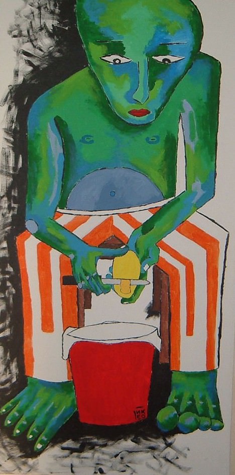 “Il primo piano di comunicazione è la creazione dell’opera performativa: la passione, l’energia, gli errori, il tempo, la perplessità della creazione del “quadro” divengono manifeste al fruitore, che così vive e “sente” la tensione dell’atto creativo, percependo l’opera come prodotto del “sentire” dell’artista.” (A. Fralleone)