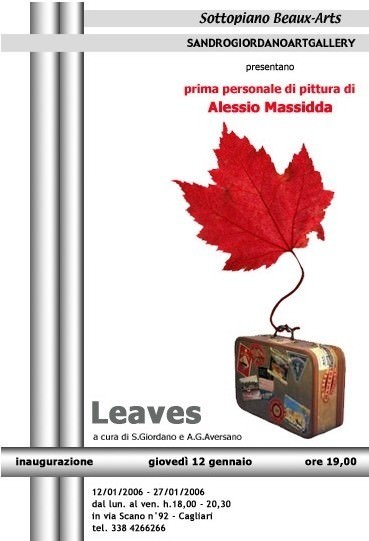 Per inaugurare il ciclo di esposizioni del 2006 l’ Associazione Culturale Sottopiano Beux-Arts di Cagliari presenta una Personale di Pittura dal titolo “Leaves” che si terrà nei locali di via Scano 92 dal giorno 12 al 27 gennaio 2006.