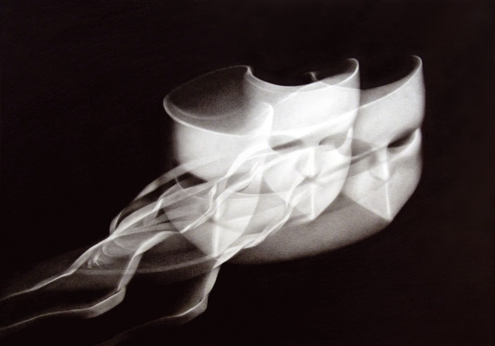 Pierro mette a frutto anche una nuova tecnica: oltre all'olio su tela l'artista espone infatti un ciclo di lavori realizzati con la grafite, tecnica estremamente elegante, raffinata anche dall'introduzione di un nuovo "colore" che va ad aggiungersi alla sua tavolozza: l'oro. Spiega l'artista: "La scelta della grafite è avvenuta per la necessità di utilizzare il colore dell'oscurità (donando oscurità alla luce) per far emergere la figura già presente sulla superficie".