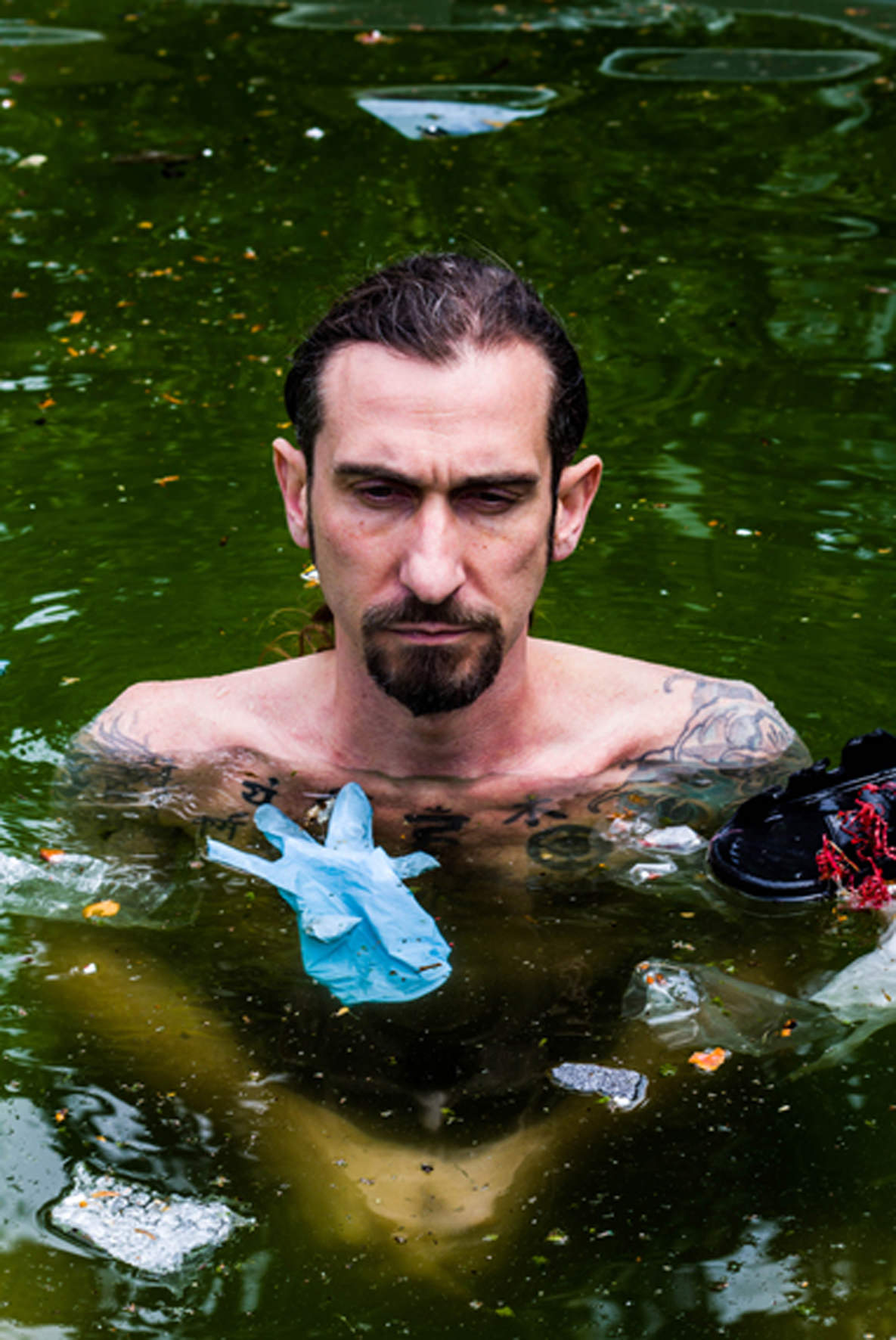 Ecco dunque nascere opere dove il corpo dell’artista diventa materia: lo usa per sentire e per esprimersi. Anche i lavori esposti nella mostra “La deriva del continente”, che si presentano sotto forma di immagini fotografiche, lungi dal voler esser valutate come manufatti artistici fini a sé stessi, sono infatti da considerarsi come “reliquie” dell’azione artistica messa in atto da Sala: alcuni scatti immortalano le performance realizzate in questi ultimi anni dall’artista, altri, creati appositamente per questa mostra, vedono il volto dell’artista come “tela” su cui sono stati affissi gli slogan (o anti-slogan) di cui l’artista si fa portavoce, mettendoci letteralmente la faccia (“Il politicamente corretto è un crimine!” o “I nostri territori e noi popoli che li abitiamo siamo in vendita”).