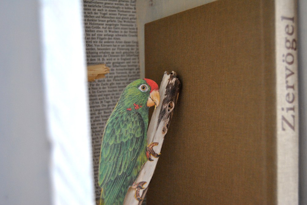 Gli assemblaggi in mostra sono composti, singolarmente, da collage di figure di volatili ritagliate da vecchi libri di illustrazione sul mondo naturale, combinate ad elementi sottratti al reale: carta da parati ornamentale, scatole di alluminio e boxes di ogni tipo vengono trasportate in un contesto poetico in cui elementi naturali e scarti artificiali convivono. Elaborati con minuzia tecnica e profondo equilibrio compositivo, ognuno di questi teatrini ammalia e si lascia osservare, seducendo l'osservatore e invitandolo a scorgersi dentro per cercare un contatto con l'opera.