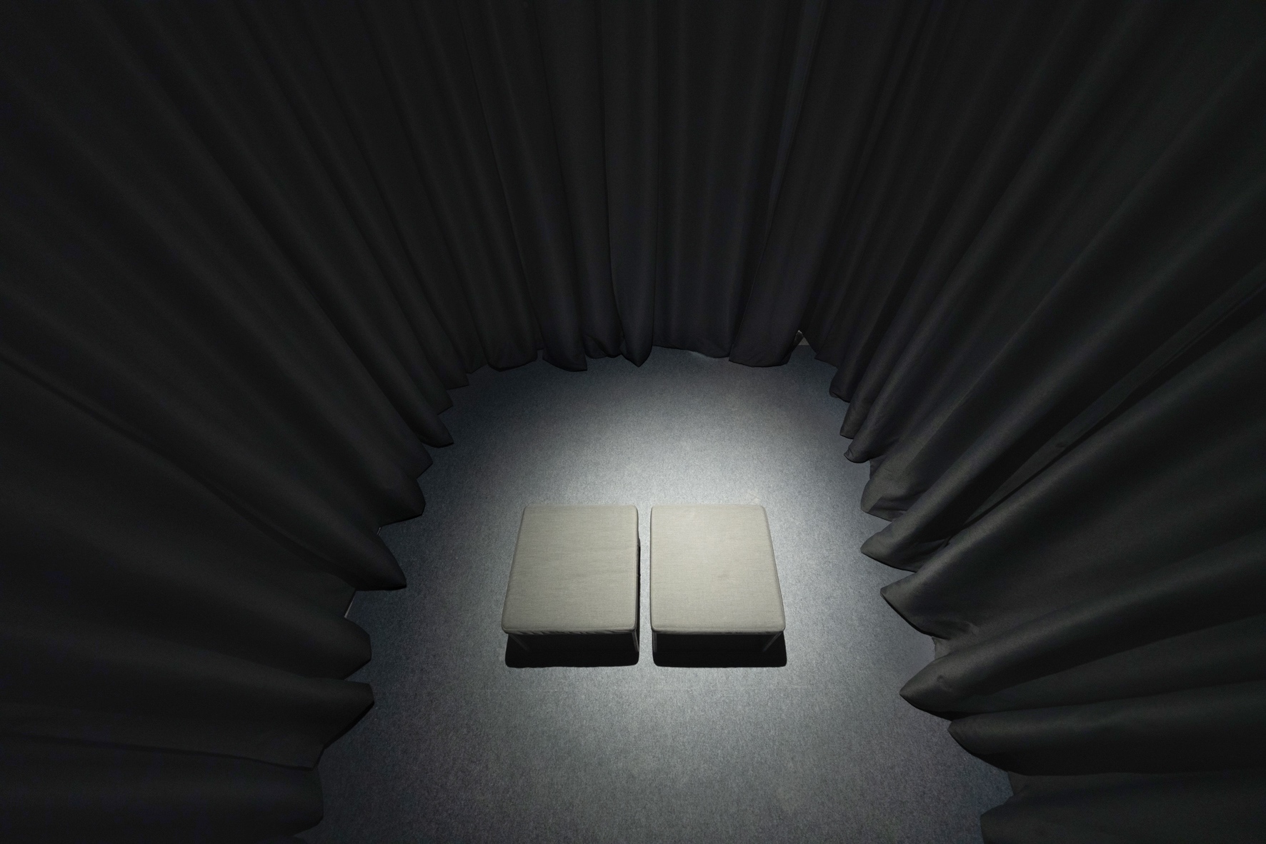 La mostra si articola attraverso i 4 livelli del corpo interno del palazzo, innescando una sorta di esperienza oggettiva nell’attivazione di eventi/accadimenti passati e presenti, atti a ridefinire i limiti percettivi di tempo e spazio. Una progressione strutturale e temporale nell’architettura cognitiva della nostra mente, caratterizzata da illusioni fonetiche Phantom Words che inducono l’ascoltatore in una condizione narrativa di inferenza
