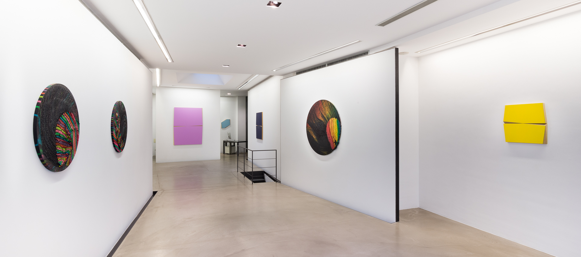 Ad accomunare i tre autori che saranno presenti all’inaugurazione dell’esposizione, venerdì 6 settembre alla Galleria Antonella Cattani, è la ricerca sulla pittura aniconica. Le opere in mostra sono state selezionate a rappresentare il linguaggio e la poetica che li distinguono. Alexis Harding è un interprete puntuale dell’estetica della nostra epoca; ne capta i tratti essenziali, li rimette in gioco e in movimento sottoponendoli a prove ardite anche dal punto di vista tecnico. La realizzazione dei dipinti segue una processualità, dalla gestazione ai tempi della sovrapposizione di più strati di pittura su tavola MDF, lavorato in orizzontale. Lontano da un discorso narrativo o descrittivo, l’artista si concentra sul rapporto tra la materia e il colore. A conferire l’idea di uno spazio di azione illimitato è infatti proprio il colore che si espande irregolarmente annullando i bordi del supporto. Nella fase di asciugatura del colore e della vernice poi, il quadro viene manipolato dall’artista, come riferisce Harding: “è una manipolazione che può voler dire muovere fisicamente il supporto”. Si innesca così un processo di mescolanza tra casualità e volontarietà che trova un sottile equilibrio fra controllo e accidentalità. La ricerca di Sean Shanahan è orientata invece all’interazione con lo spazio; al posto di una sottrazione della pittura in sé per sé, punta sul rigore di un linguaggio che procede da elementi basilari per dar vita a costruzioni complesse.