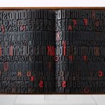 Giorgio Milani (1946), artista che ha fatto invece della scrittura, del segno e dell’alfabeto il centro della sua ricerca, nonché una vera e propria identità artistica, è presente con due Sindoni di Gutenberg. Tecnicamente sono grandi teli di lino che, una volta posati su un Poetario (realizzato con 1867 fregi, cliché e caratteri tipografici di legno che simboleggiano il vasto patrimonio culturale dell’antico Occidente), vengono lavorati a spatola con un impasto di cera e colore ad olio. In queste opere l’immagine delle lettere si rivela in negativo: emergono acrome mentre ombre di colore tracciano le intercapedini.