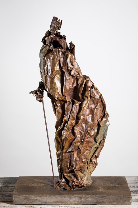 “E' sempre un po' questione di fare i conti con quello che resta, lacerti di sensi e sensazioni, brividi e ricordi si impastano, si fanno gesto e segno sopra lamiere e marmo, si fanno spazio e forma tra ossidi e ruggini. Intuizione e sua restituzione plastica si esprimono attraverso materiali già vissuti e chiamati a nuova vita, nuove possibilità.