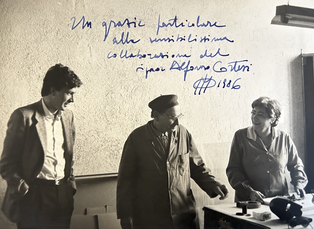 La casa e il laboratorio dei Cortesi diventano ben presto punti di riferimento per moltissimi artisti, con diversi dei quali Alfonso stringe sincere amicizie, destinate a durare per tutta la vita. Insieme alla moglie frequentano mostre, inaugurazioni, eventi, respirando a pieno quel clima di rinascita dell’arte proprio del periodo del “miracolo economico” italiano. Milano, tra gli anni 50 e 60, è una delle capitali dell’arte europea, città energica, proiettata verso il progresso, cuore pulsante di quella rinascita culturale, economica e sociale che sembrava non dovesse aver fine, nonché vivacissimo centro di libera sperimentazione artistica a livello internazionale. Quello stesso clima di grande vitalità e rinnovamento coinvolgeva anche l’area monzese e la Brianza, ricche di piccole gallerie, spazi espositivi e moltissime iniziative culturali.