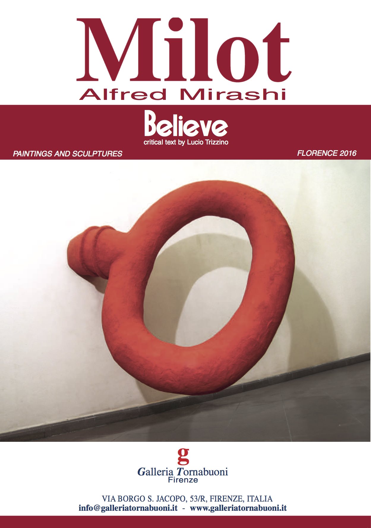 Inaugura Il 12 gennaio 2016 alle ore 18,00 presso la Galleria Tornabuoni in Borgo S. Jacopo 53/r, nel cuore storico di Firenze a pochi passi da Ponte Vecchio, la mostra personale Alfred Milot Mirashi intitolata “…BELIEVE …”.. testo critico di Lucio Trizzino.