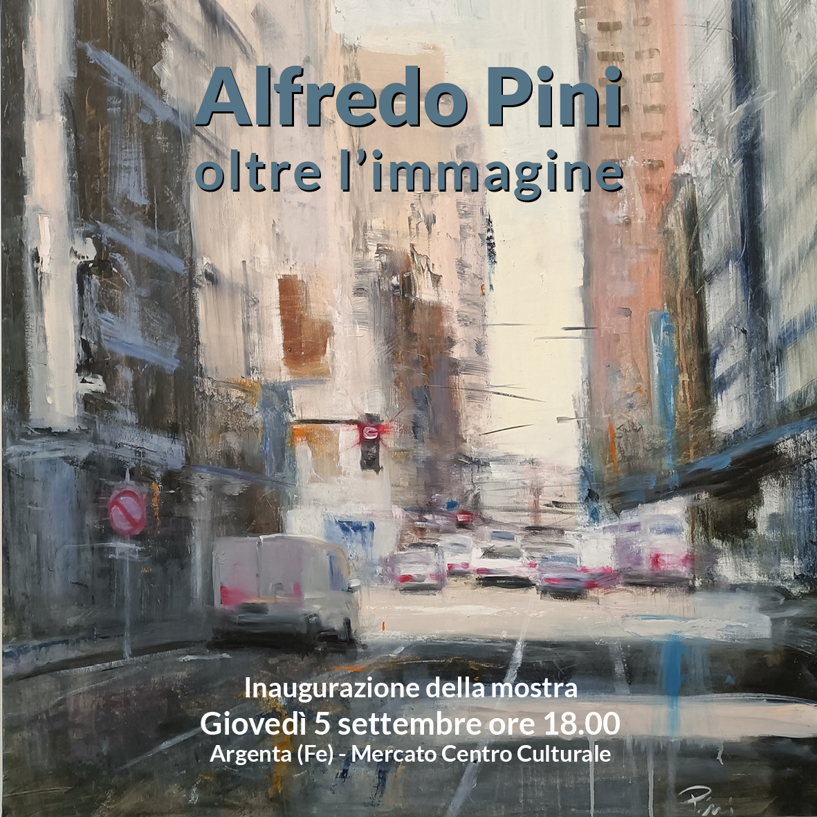 Gli oltre 40 dipinti su tela di Alfredo Pini esposti in mostra, hanno come tema il paesaggio urbano, un paesaggio inteso non solamente come insieme di strade e architetture ma soprattutto come luogo nel quale viviamo, interpretato da diversi punti di vista. Le opere sono caratterizzate da una pittura veloce ed istintiva, dove, l’assenza di ogni tipo di descrizione dettagliata tende più ad evocare che a raccontare col preciso scopo di indurre l’osservatore ad interrogarsi e cercare interpretazioni personali “oltre l’immagine ” raffigurata. Le automobili, gli edifici, le strade o qualsiasi altro elemento tipico del paesaggio urbano sono realizzati attraverso una pittura estremamente sintetica; i colori, le luci e le ombre non sempre coincidono con quanto ci si aspetterebbe di trovare nella realtà, la figura umana è assente, ma la sua presenza la si avverte in ogni dipinto e tutto funziona e tutto risulta plausibile, in quel magico incontro che solo l’arte si può permettere. Ogni dipinto ci invita a guardarci dentro e ci suggerisce stati d’animo, sensazioni, emozioni o impressioni da interpretare secondo il proprio punto di vista, in base al proprio vissuto.