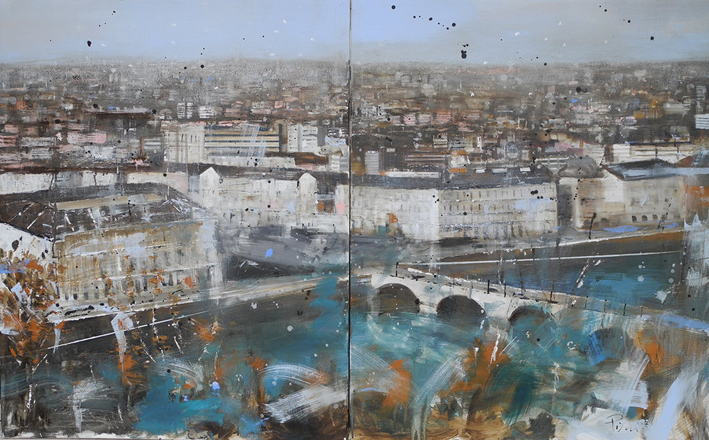 Prevale nei dipinti di Pini, sia nei paesaggi urbani che nei musicisti, un’idea di movimento, intesa non soltanto come azione ma anche come metafora di trasformazione di una società che cambia a ritmi frenetici. Un’analisi sia del mondo esteriore (città) sia di quello interiore (musicisti Jazz).