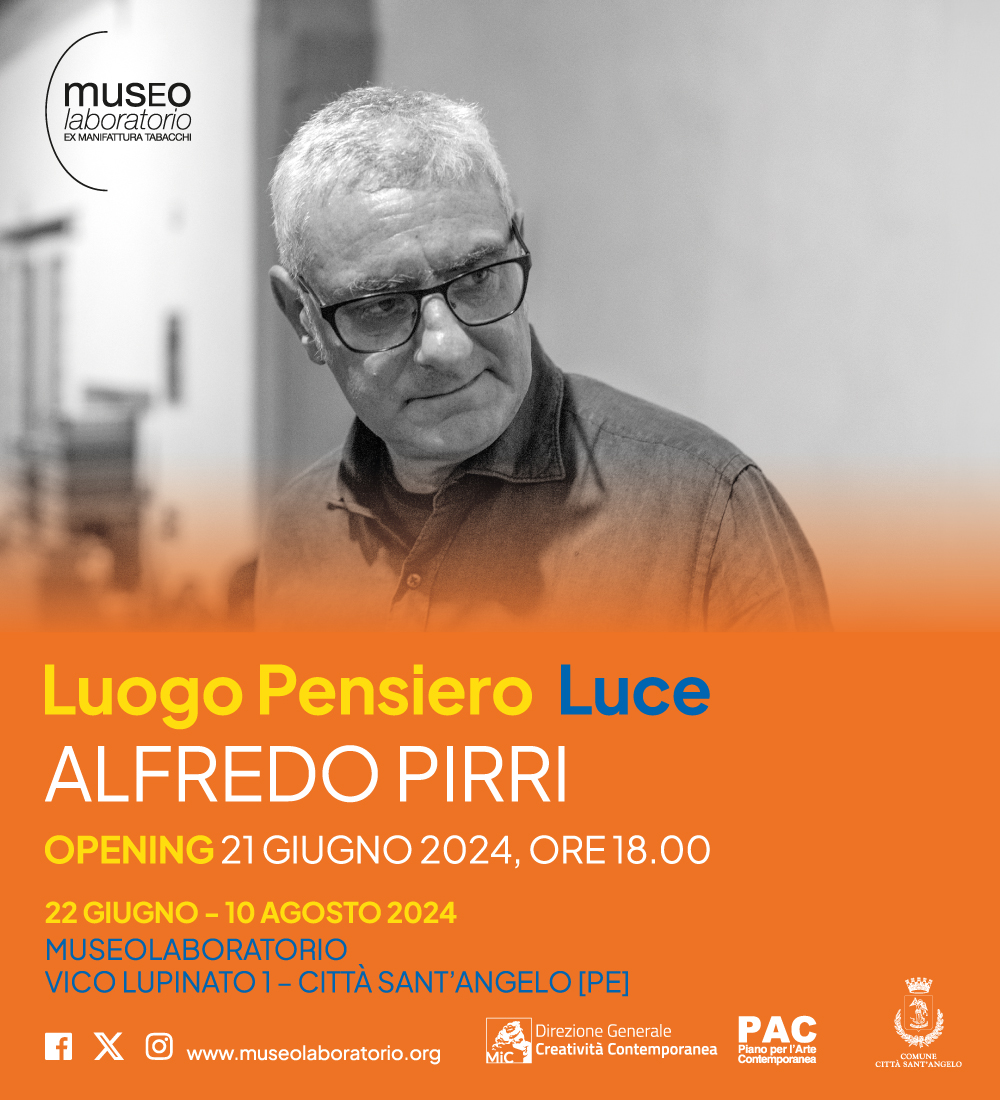 Dal 21 giugno al 10 agosto 2024, il Museolaboratorio d’Arte Contemporanea di Città Sant’Angelo (Pe) presenta Alfredo Pirri. Luogo Pensiero Luce, progetto realizzato con il sostegno del PAC 2022-2023 – Piano per l’Arte Contemporanea.