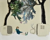 Un’esile figura si muove su uno sfondo ovattato, su fragile carta da parati dalle tinte pallide. Si aggira sognante in un mondo in cui ogni cosa appare sospesa, legata a un filo in un singolare equilibrio. Pochi, paradigmatici elementi ci riportano alla realtà: un televisore sprovvisto di immagini, i rami rinsecchiti di un albero, un divano abbandonato: sono i segni di un’assenza che si trasforma in un gioco, dispiegando storie, sogni, avventure.