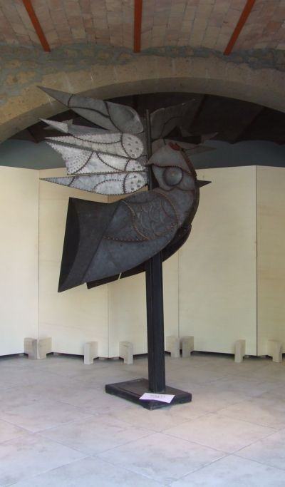 Con due grandi sculture Alice Gombacci inaugura il nuovo spazio polifunzionale di Pitigliano. La coordinazione è del regista e critico d’Arte Pierluigi Albertoni. Queste due sculture sono corrusche presenze che, in una interessante monografia, Vittorio Sgarbi denotava come “macchine mobili di legno e piombo, mostri femminili, guerrieri che non temono il confronto con la difficile realtà…” Due polimorfe presenze che si espandono con fluidità nello spazio, grazie anche ad alcune zone mobili (soprattutto ali), che permettono di ottenere una lettura multipla dei volumi e creano suggestivi chiaroscuri spaziali. Seppure dei primi anni del 1985, queste due opere, non risentono del passare del tempo, anzi ne risultano accentuate e caratterizzate dimostrando così (se ancora ce ne fosse bisogno), come la vera arte non si sottomette ad alcuna moda e si affranca da ogni possibile eccesso di modernità.