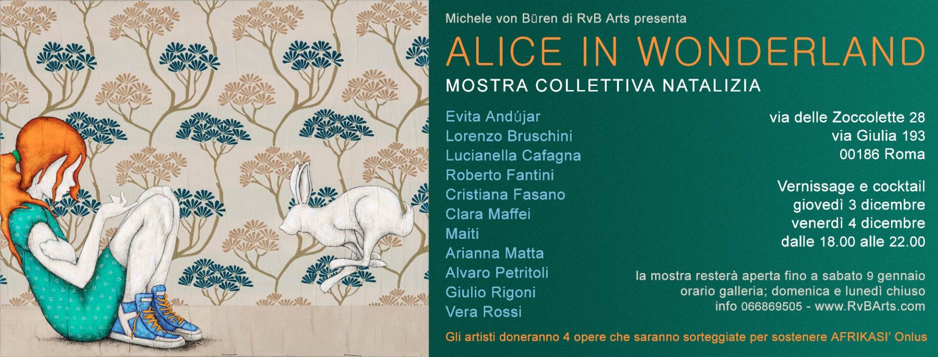Durante il periodo delle festività natalizie RvB Arts presenta ALICE IN WONDERLAND, una mostra collettiva che prende spunto del celebre libro di Lewis Carroll, Alice nel Paese delle Meraviglie.