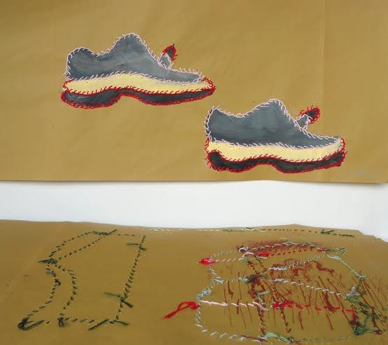 rappresentano scarpe di ogni tipo, dall’infradito allo stivale; e capi di biancheria, anch’essi colorati,