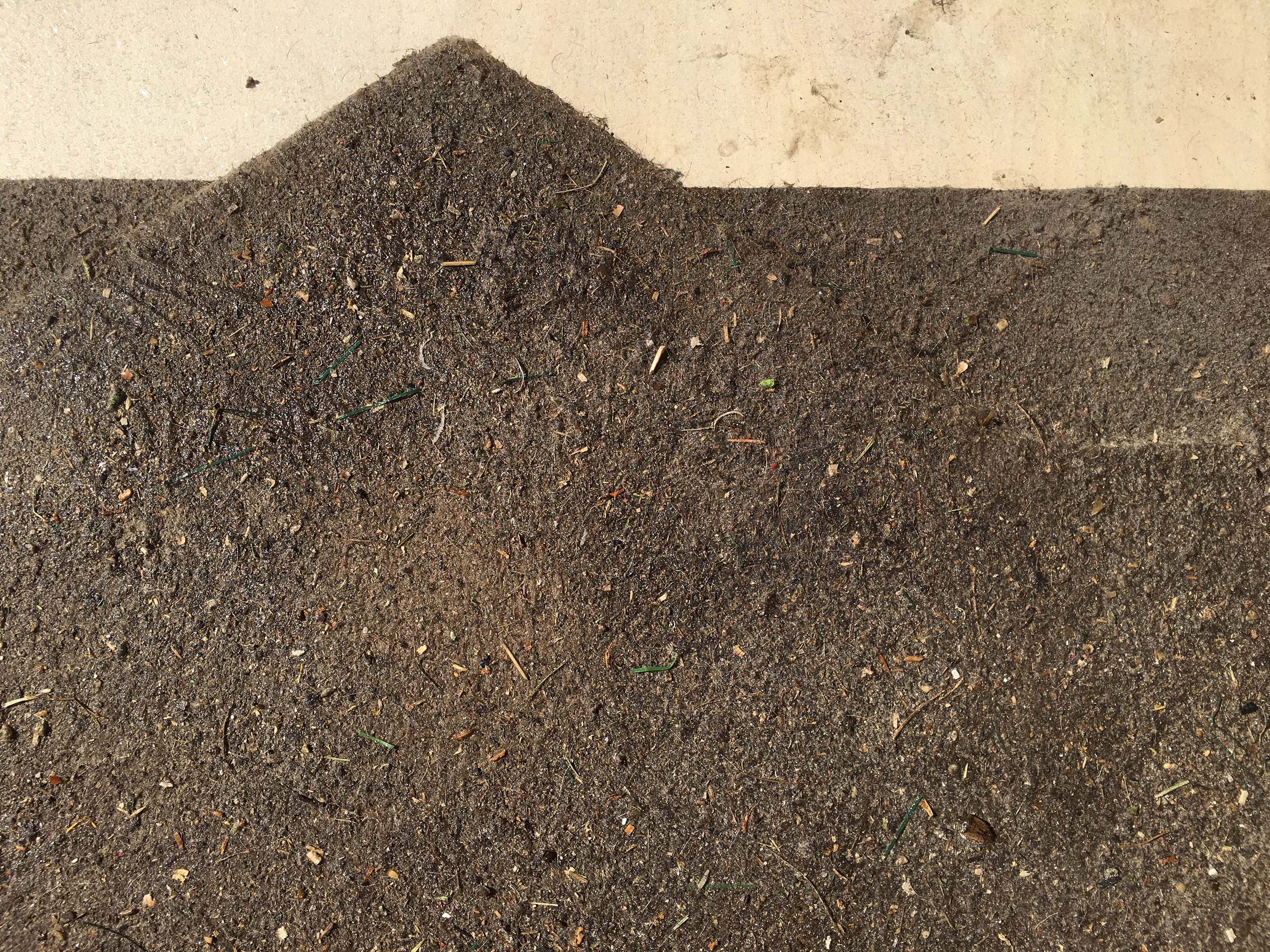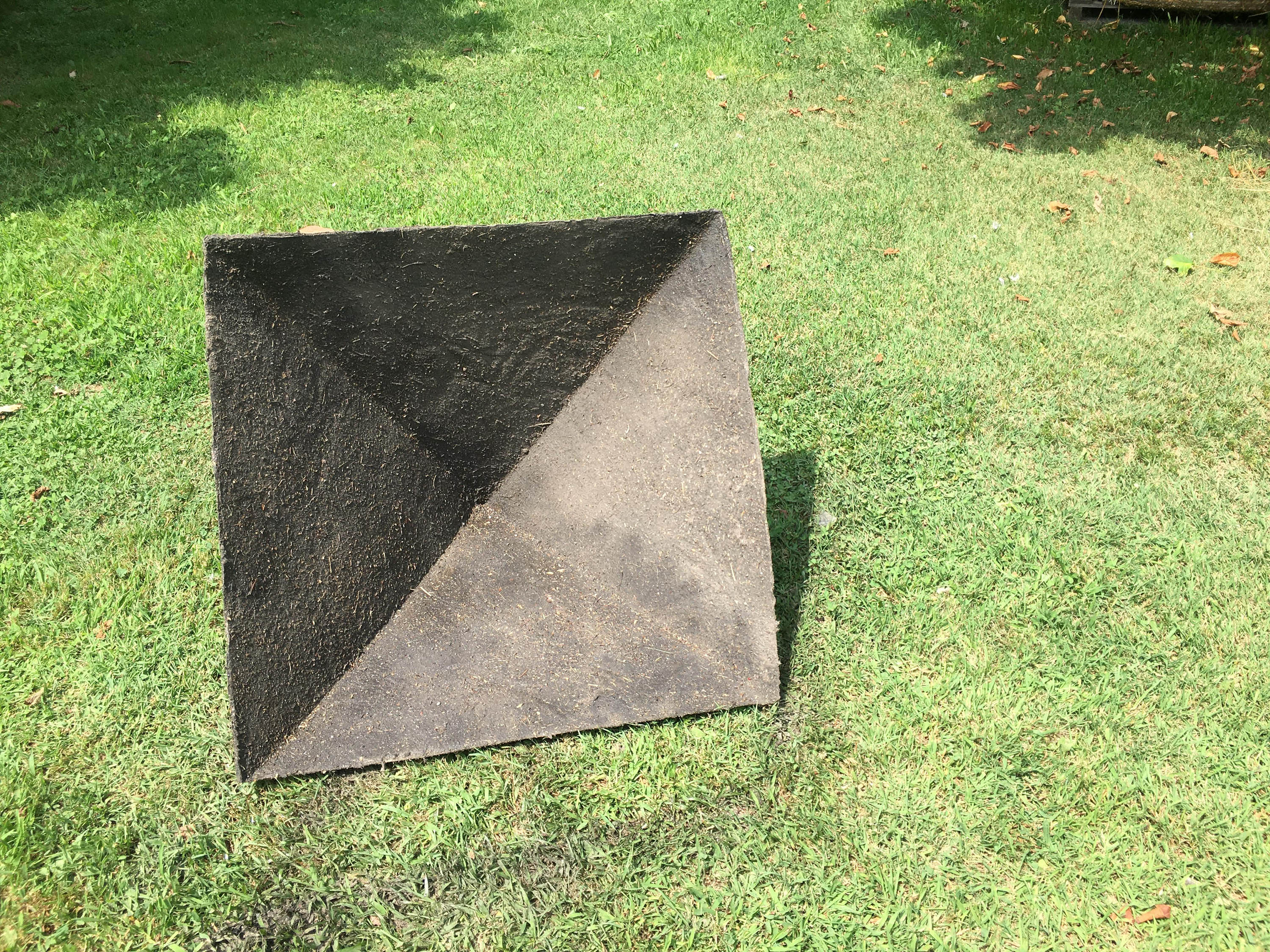 L’installazione site-specific materiaprima è costruita attorno a un elemento principale: la polvere. Mestriner e Moslemi elogiano il processo di formazione che trae origine dalla polvere assimilandolo a quello che, a partire dal punto, compone linee e superfici che creano i solidi platonici