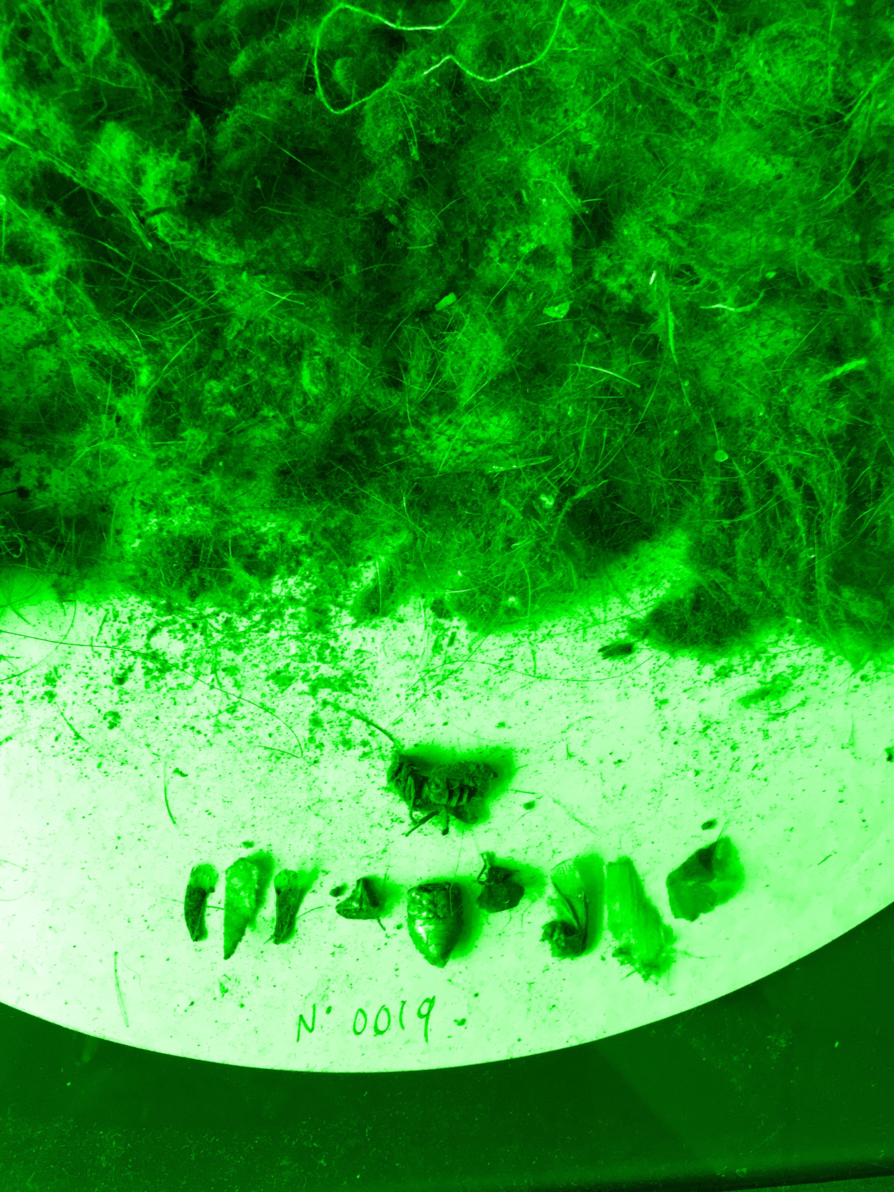 Il punto, (''il granello''), è la parte costitutiva più elementare della polvere, la prima parte del tutto. Quell'invisibile parte del cosmo, se aggregata, mostra la sua materialità. Il risultato sarà il rapporto tra visibile e invisibile, tra l’essere in potenza e l’essere in atto, che convivono nella polvere. Mestriner e Moslemi elogiano il processo di formazione che trae origine dalla polvere assimilandolo a quello che, a partire dal punto, compone linee e superfici che a loro volta creano i cinque solidi platonici. Con la polvere realizzano tetraedro, cubo, ottaedro, dodecaedro e icosaedro: questi sono la struttura elementare del mondo e rappresentano anche la sua origine e gli elementi che lo compongono: fuoco, terra, aria, etere e acqua. “Se la forza construens degli artisti ha organizzato la polvere in mostra a formare delle geometrie regolari” scrive De Cobelli “la pars destruens dell’entropia spezzerà il legame che le unisce fino a rendere le opere indistinguibili. La polvere che compone le sculture tornerà, infine, ad essere nulla oltre che polvere”.
