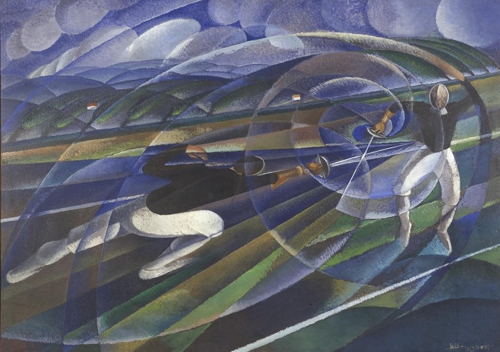 In mezzo il coniglio bianco che corre in continuazione ripetendo ossessivamente di avere fretta: e dunque si passa dal tempo accelerato rappresentato nei modi più diversi dai futuristi, al tempo incantato e alla rigidità delle opere metafisiche.