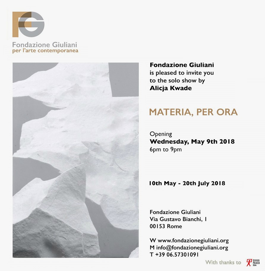 La Fondazione Giuliani è lieta di presentare la prima mostra personale di Alicja Kwade a Roma. La ricerca di Alicja Kwade parte dallo studio attento della realtà e delle sue architetture interne per approdare in universi mentali paralleli dalle molteplici possibilità di lettura. Affascinata dai confini incerti tra visibile ed invisibile, esplora ciò che è reale e ciò che non lo è stimolando l’occhio dello spettatore in un gioco dove spazio, tempo, scienza e filosofia creano un labirinto di percezioni. Nelle sue installazioni, così come nei video e nelle fotografie, manipola e trasforma oggetti di uso quotidiano per conferire loro forme e valenze di significato diverse, rivelando così i molteplici e talvolta nascosti sostrati del visibile. Perché, come ci spiega l’artista stessa, la materia esiste in uno spazio di undici dimensioni, sette delle quali a noi inaccessibili ed ignote ma che coesistono parallele a quelle che conosciamo. Forme e materiali che abitano il nostro universo di esperienze subiscono metamorfosi e distorsioni per dimostrare come tutto possa assumere una forma altra ed essere soggetto a cambiamenti di natura fisica, di struttura e di sostanza. Ogni lavoro della Kwade cela una minuziosa ricerca scientifica che si declina in un linguaggio costruito con forme sintetiche ed essenziali, dove il segno ci invita a pensare e reinterpretare in continuazione ciò che l’occhio ed il nostro inconscio osservano. Oltre ad esplorare la nostra percezione del reale, del tempo e dello spazio, le sue opere gettano uno sguardo sulla nostra società e le sue regole di funzionamento e sugli schemi naturali ed artificiali che condizionano il nostro modo di pensare.