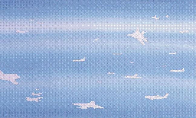 Ed è il cielo il luogo di Boetti, cieli ad alta quota, gli aerei scrivono una storia ancora illeggibile, un