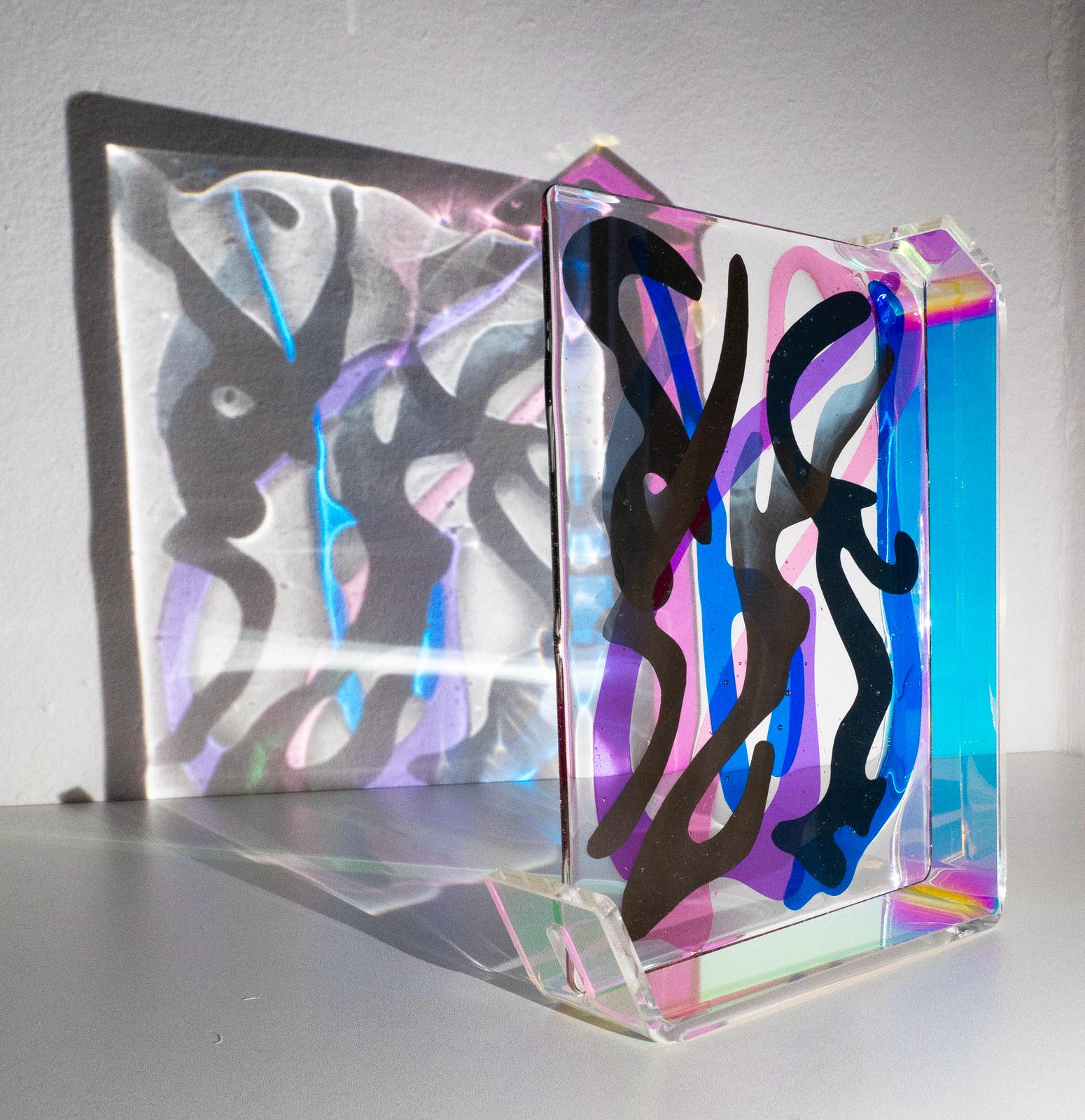All’interno di questo progetto, Avvassena presenta una ricerca che attraversa il corpo, il linguaggio e la materia, mettendo in relazione dimensione individuale e struttura universale. Nella serie Human Cosmogony, l’artista indaga la dimensione cosmica che connette ogni esistenza. Attraverso la sovrapposizione di referti radiografici dell’addome appartenenti a individui diversi, costruisce immagini in cui il corpo perde la sua singolarità e si apre a una condizione intersoggettiva. L’interno diventa spazio condiviso, un campo in cui le differenze si dissolvono in una continuità più ampia. Con Ante Babele, Avvassena immagina un linguaggio originario, precedente alla frammentazione. I segni, trascritti in caratteri oscuri e ricavati da lastre manipolate, evocano una memoria ancestrale in cui parola, corpo e coscienza si muovono in un dialogo armonico. Non si tratta di un codice da decifrare, ma di una forma che richiama una condizione di unità, in cui la comunicazione precede ogni divisione. In questa occasione l’artista presenta anche l’opera inedita Gregariousness 1.From Plank to Googol che introduce una riflessione sulla materia e sui processi di aggregazione. Dai micro cristalli di carborundum emerge una struttura continua, costruita per addensamento progressivo. Il passaggio dall’unità minima a una moltitudine estesa riflette una legge di gregarietà che attraversa il biologico e il sociale. Ogni elemento esiste in relazione e contribuisce a una forma che non si chiude, ma resta fluida. La luce, rifratta da ogni particella, rende visibile la densità di queste connessioni. Le tre opere convergono in una visione comune. Il corpo, il linguaggio e la materia rivelano una stessa condizione di interdipendenza. La “gemellarità cosmica” si manifesta come principio fondante. Ogni elemento, umano o non umano, micro o macro, partecipa a una stessa matrice. Non esiste separazione, ma una continuità profonda che lega ogni forma del vivente e del cosmo in una relazione originaria e condivisa.