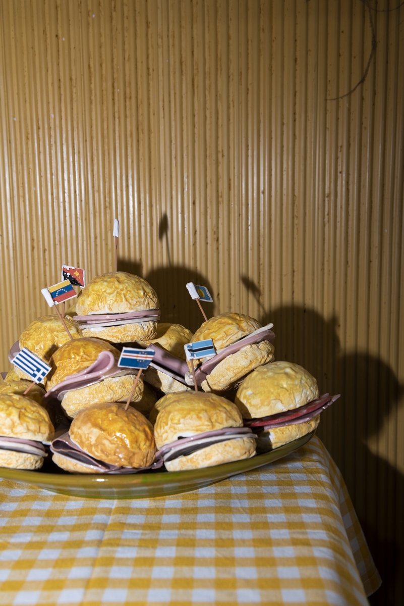 Giorgio Di Palma (Grottaglie, 1981) è ceramista e artista visivo. Riproduce oggetti di uso quotidiano in ceramica, in dimensioni reali, privi di funzionalità, ma carichi di significati estetici, concettuali e sociali. A Massa, presenta Festa di Compleanno, un progetto di arte pubblica ideato con Pigment Bari e nato dal coinvolgimento dei cittadini di Polignano a Mare (BA), invitati a far pervenire all’artista fotografie di feste di compleanno degli anni Settanta e Ottanta, da “riportare in vita” attraverso la ceramica. La riattivazione visiva dei ricordi collettivi risveglia al contempo l’empatia e il senso di comunità.
