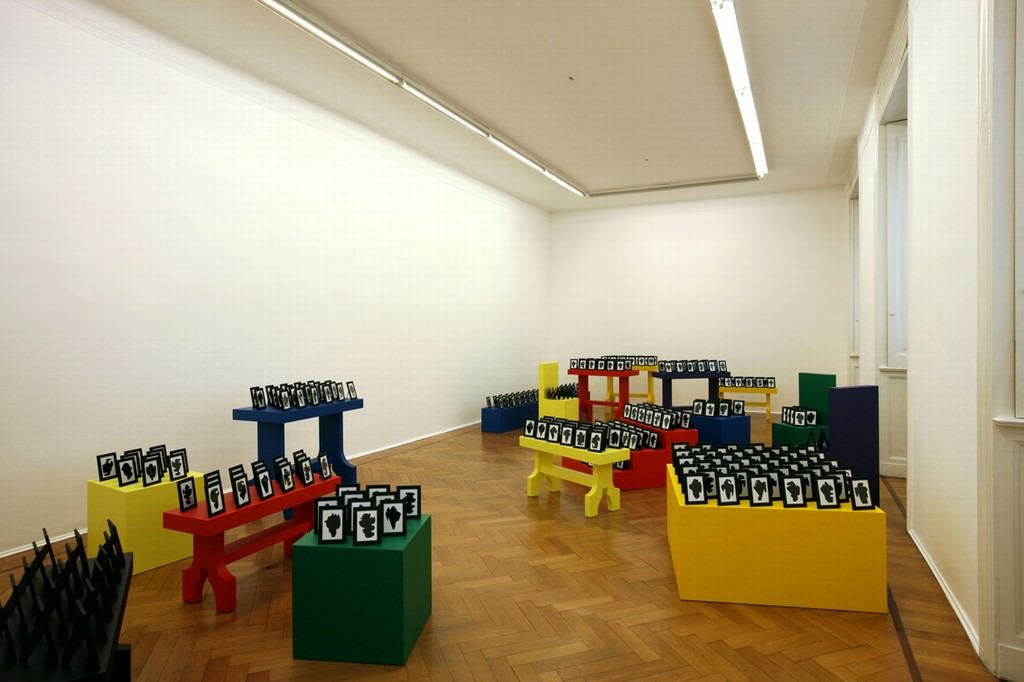 Per la prima volta Allan McCollum e Allen Ruppersberg, coetanei e amici da tanti anni,espongono insieme. L’opera in mostra nasce dall’unione di due lavori: the Shapes Project di AllanMcCollum e The Never Ending Book di Allen Ruppersberg.The Shapes Project, opera in progress, iniziata nel 2005, prevede la realizzazione di “shapes”,forme astratte, elaborate al computer e poi stampate in forma di silhouettes, in un numero chepossa dare la possibilità a ciascun abitante della terra di possederne una individuale fino aquando la popolazione mondiale avrà raggiunto il suo picco di crescita massimo che secondo lestatistiche dovrebbe essere tra gli 8 e i 20 miliardi intorno alla metà di questo secolo.The Never Ending Book, è un’installazione composta da una serie di oggetti scenograficimulticolori, appositamente costruiti, su cui, nella versione presentata alla fiera di Basilea del 2007,erano appoggiati cartoni contenenti fotocopie che liberamente assemblate dal pubblico, potevanocreare un numero illimitato di libri, uno diverso dall’altro.Nella mostra allo Studio Guenzani le due opere dialogano in un’installazione ambientale, cheoccuperà tutto lo spazio della sala grande della galleria. Gli oggetti creati da Ruppersberg,ricostruiti per la mostra, fungeranno da supporto per un certo numero delle “shapes” di McCollum,incorniciate e accuratamente disposte secondo uno schema preciso.La mostra presenta quindi un’opera inedita, in cui si fondono le caratteristiche proprie di entrambii lavori, che hanno piani concettuali in comune pur essendo visivamente molto diversi: il senso diuna progettualità che non abbia un termine preciso, deciso dall’artista ma che riguardi lospettatore, inteso come colui il quale renderà unica l’opera. Al posto dei libri che ognuno si puòassemblare a piacimento, ci sono ora le forme, quasi dei ritratti o meglio dei marcatori di identità,dei loghi personali. Un modo per esaltare l’individualità attraverso la reiterazione del gesto, dellaforma sempre simile ma mai uguale.Allan McCollum e Allen Ruppersberg sono due tra i più importanti artisti concettuali americanidella loro generazione. Hanno sviluppato, con linguaggi diversi, le dialettiche che intercorrono tral’opera d’arte, il multiplo e gli oggetti di uso quotidiano.L’opera di Allen Ruppersberg indaga criticamente e ironicamente i linguaggi dei mezzi dicomunicazione e delle forme artistiche come il cinema e la letteratura, decostruendo i loro codici,facendone slittare i significati a favore di una diversa e più diretta fruizione dell’opera d’arte.Allan McCollum concentra da molti anni la sua ricerca sul rapporto tra l’oggetto e la suatrasfigurazione in opera d’arte attraverso la sua “produzione” in quantità quasi industriali e tuttaviaottenendo forme e soggetti mai identici tra loro. Per alcuni progetti l’artista ha collaborato conmusei storici e scientifici americani ed europei.Allan Mccollum è nato nel 1944 a Los Angeles. Vive e lavora a New York.Allen Ruppersberg è nato nel 1944 a Cleveland. Vive e lavora a New York e Los Angeles