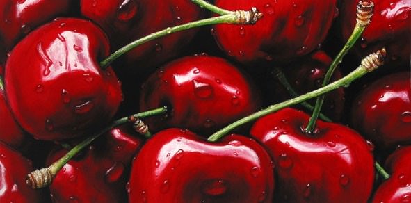La sua è un’arte giovane, fresca, come le gocce di rugiada che imperlano i frutti che dipinge.