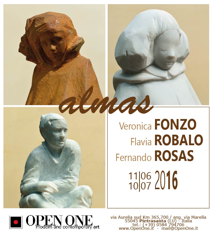 Le ultime opere scultoree di due giovani artiste argentine ormai da tempo trasferitesi a Pietrasanta e le prime realizzazioni in marmo di un amico e collega giunto direttamente dal sud America per sperimentare il nuovo materiale. Si tratta di Veronica Fonzo, Flavia Robalo e Feranando Rosas. Le prime due vivono a Pietrasanta da quasi 20 anni, dove hanno aperto uno studio di scultura, “La polveriera”. E' qui che hanno ospitato l'amico Fernando Rosas, giovane scultore argentino che fino ad oggi aveva utilizzato soprattutto il legno come materiale per le proprie opere; giunto in Versilia, nella patria del marmo e della scultura, ha voluto sperimentare – si può dire con successo – il nuovo materiale, realizzando così circa 10 nuove opere, in mostra per la prima volta da Open One.