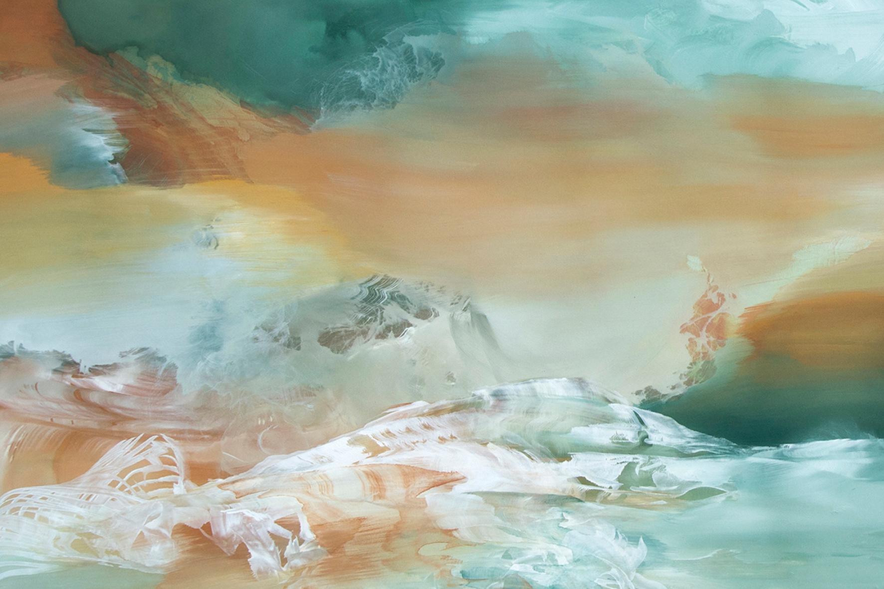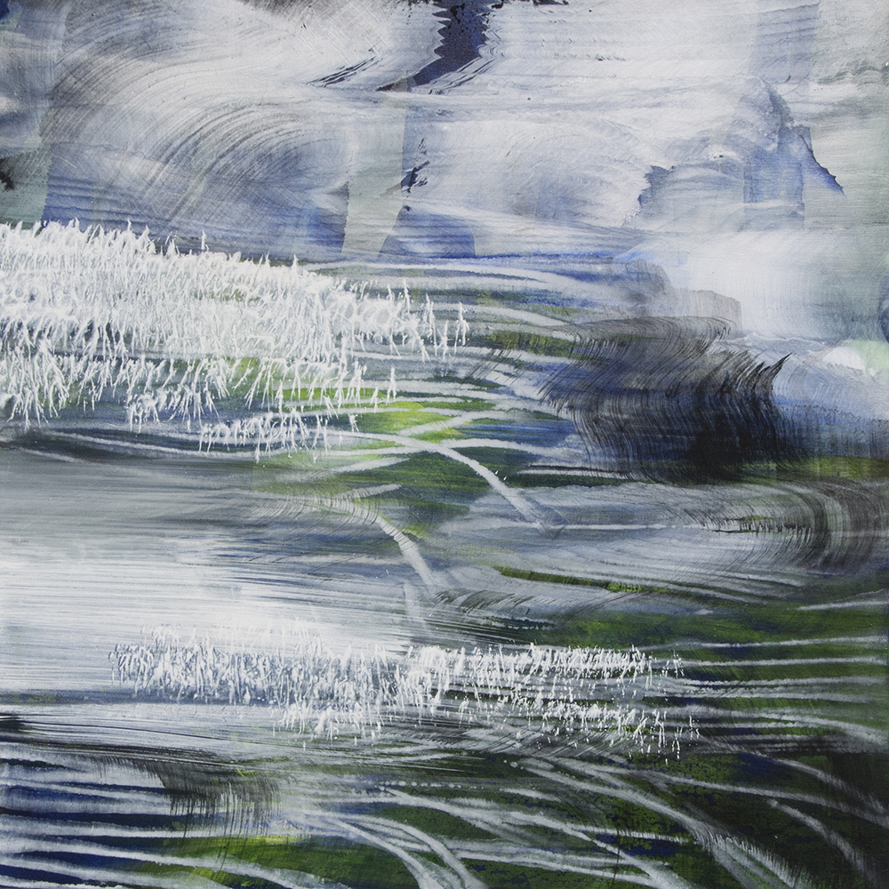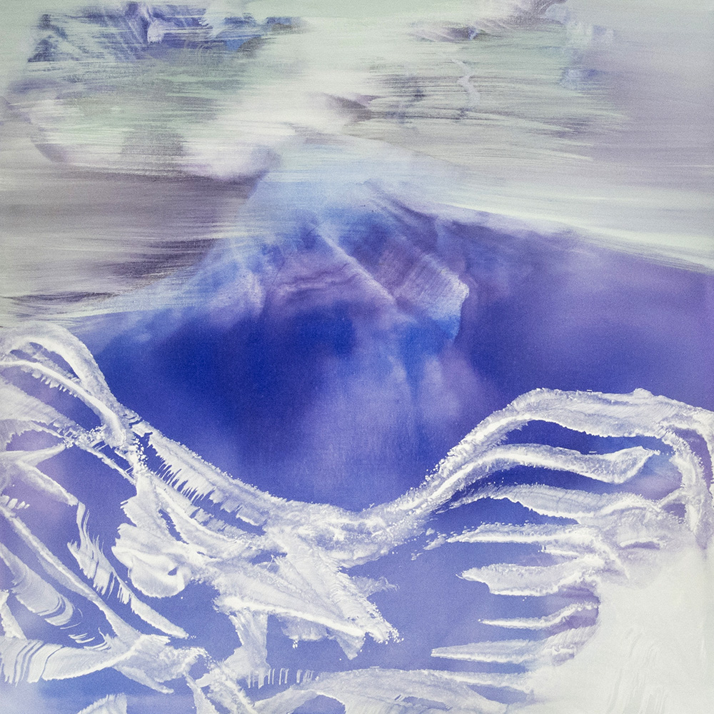 Vallicelli non descrive la natura che la circonda, piuttosto racconta quella che la pervade da dentro. Guardando le sue opere ci si trova davanti a orizzonti capovolti, all’interno di forme fossili, fuori in uno spazio senza riferimenti, sotto un cielo pronto a squarciarsi.