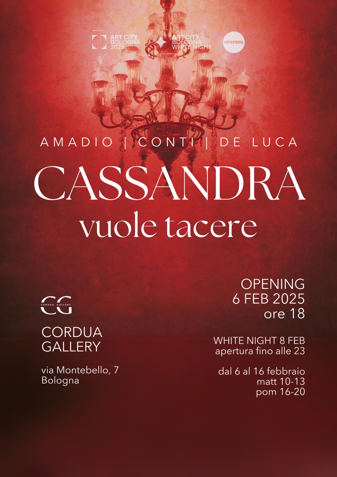 Il progetto espositivo/installativo riflette sulla figura di Cassandra che nella tragedia greca di Eschilo si rivolta al suo personaggio con due atti trasgressivi: vuole tacere e si strappa di dosso le fasce profetiche che l’hanno imprigionata nella condanna della propria maschera.