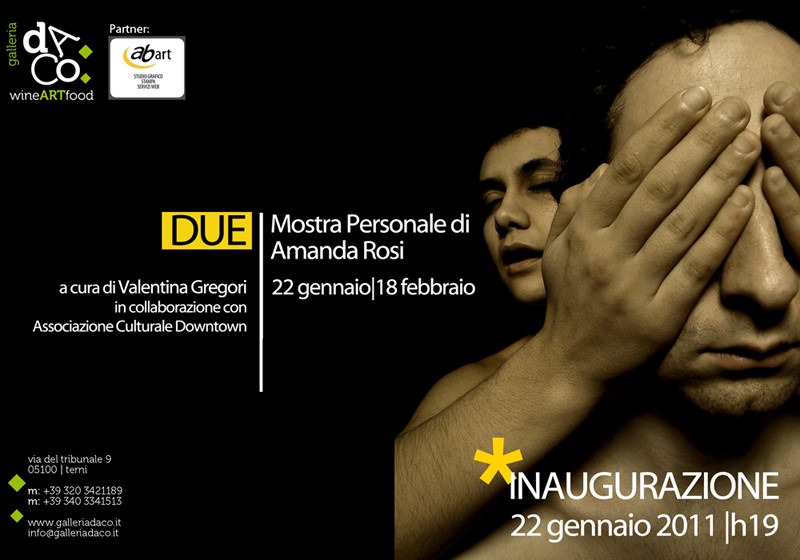 Sabato 22 gennaio alle h 19,00, presso la Galleria Da. Co. di Terni l’inaugurazione di “DUE”: prima mostra personale della giovanissima artista Amanda Rosi, promossa dall’Associazione Culturale Downtown e curata da Valentina Gregori.