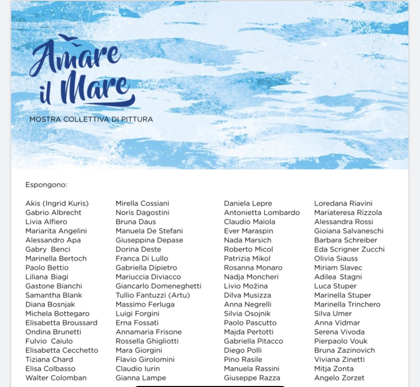 Sabato 5 ottobre alle ore 18 si inaugura alla Galleria Rettori Tribbio di Trieste (piazza Vecchia 6) la mostra collettiva di pittura “Amare il mare”, che sarà introdotta sul piano critico da Gabriella Dipietro.