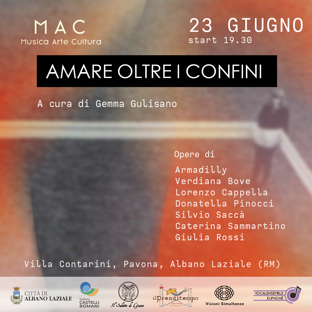 Il Mac Festival delle Arti ha il piacere di ospitare, nella suggestiva cornice dei Castelli Romani, la collettiva Amare oltre i confini, a cura di Gemma Gulisano.