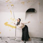 La narrazione comincia con l’emergere del conflitto: una tensione tra i pensieri pesanti contenuti in un quaderno e la leggerezza di una quantità massiva di involucri di caramelle che simboleggiano il bisogno di colmare i vuoti emotivi con lo zucchero. Queste dualità rivelano i meccanismi di compensazione e gli auto-giudizi che anticipano la fase in cui il corpo lascia tracce di sé: segni di pittura su pareti e soffitto che testimoniano come il corpo ricordi. Questi segni, realizzati bilanciando i pennelli o le spugne imbevute di colore, sono echi di momenti in cui regna il caos, quando dolore e disordine prevalgono. Questo caos precede la necessità dell’equilibrio e diventa il terreno turbolento da cui nasce il bisogno di ristabilire l’armonia.