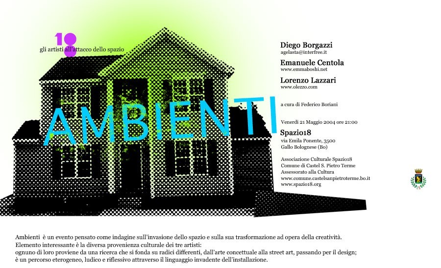 Ambienti è un evento pensato come indagine sull’invasione dello spazio e sulla sua trasformazione ad opera della creatività.